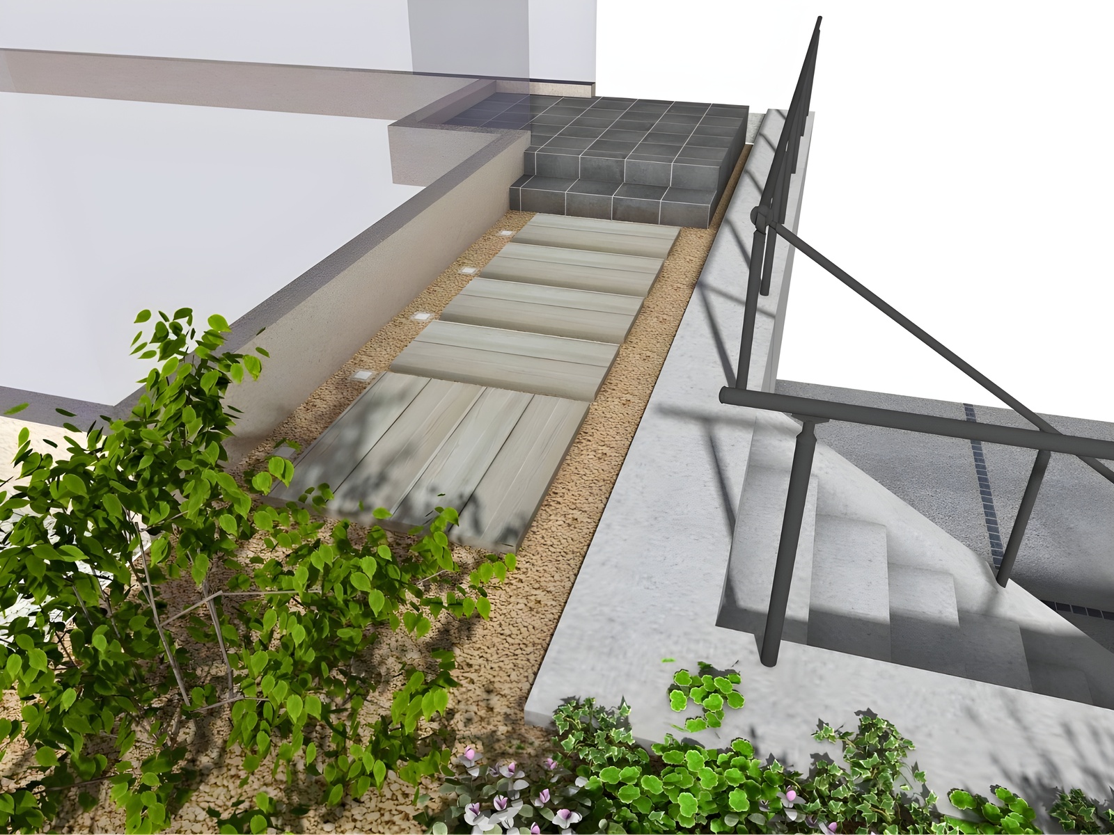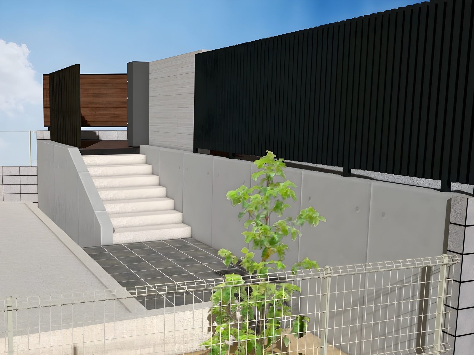 白壁が切り取る、空への動線。光と緑に導かれる、スカイ・アプローチ。
