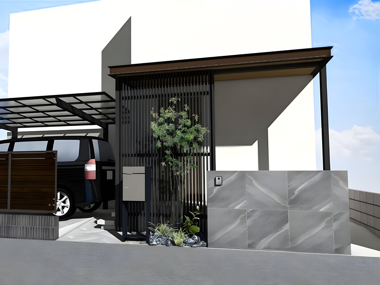 白き静寂と、黒の律動。異素材が響き合う、モダニズム・ゲート。