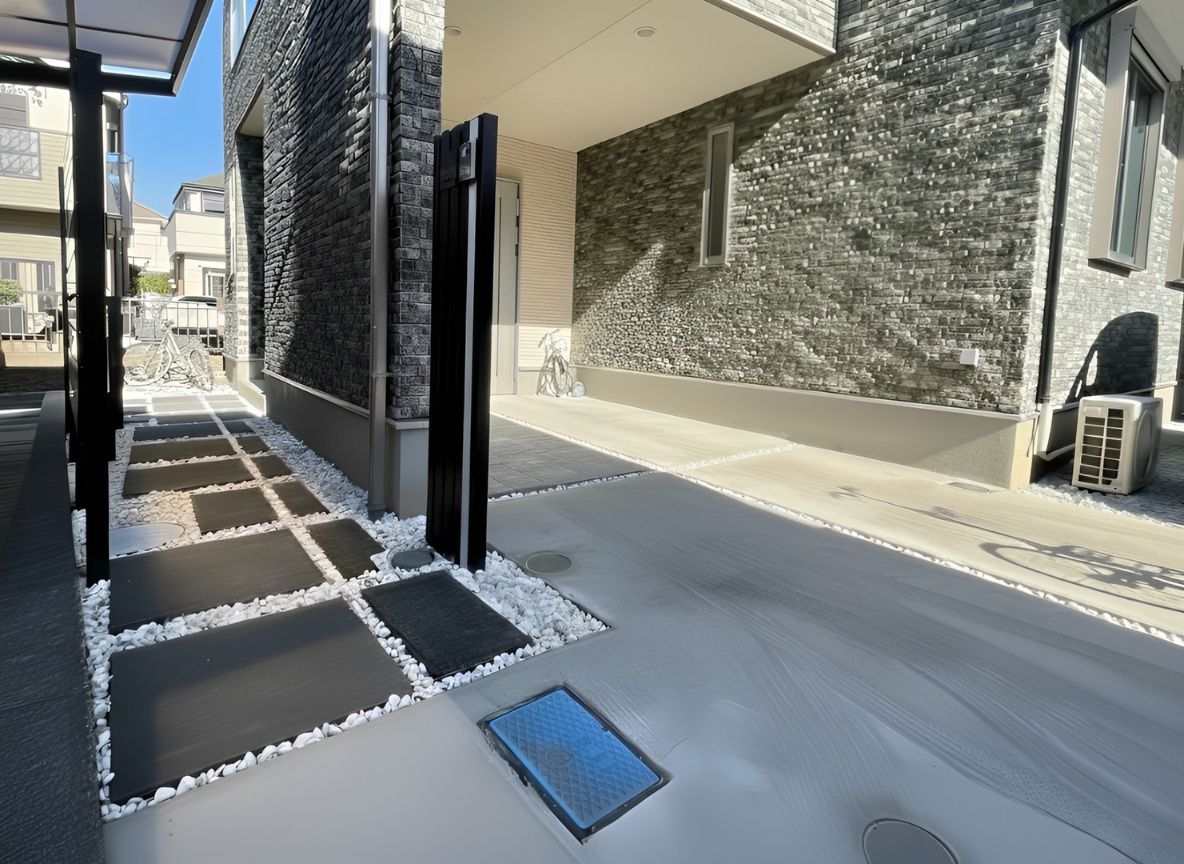 世田谷区の新築外構|コンクリートで描く欧風アート。機能美を極めた「特殊仕上げ」のアプローチ
